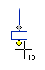 Jos viet kohdistimen lähelle symbolin kytkentäpisteen kahvaa, sen väri vaihtuu keltaiseksi, ja kohdistin hakeutuu IO-pisteeseen. Voit osoittaa IO-pisteen yhteysviivan pisteeksi.