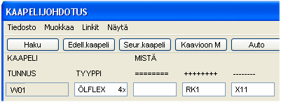 Ohjelma avaa hakuehtojen mukaisen johdotusluettelon tietokantanäyttöön.