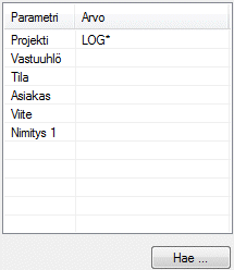 kenttään projektin tiedoissa esiintyvä merkkijono. Voit kirjoittaa myös vain osan