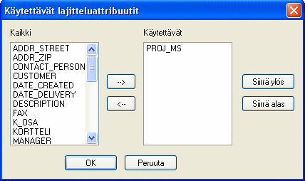 - Luettelossa näkyvät käytössä olevat lajitteluperusteet.