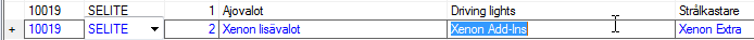 Ohjelma kopioi rivin 2 kenttiin tiedot rivin 1 kentistä Teksti ID ja Type, ja lisää uuden rivinumeron.