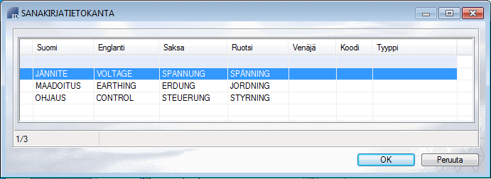Tietokannassa on piirustukseen lisättäviä vakiotekstejä sekä niiden käännöksiä eri kielille.