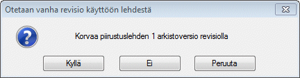 Keskusteluikkunassa painikkeella Korvaa nykyinen voit korvata arkistoversion kyseisellä revisiolla. Jos hyväksyt korvauksen, mahdollisesti avattuna oleva arkistoversio suljetaan, ja kopioitu vanha versio avataan sen tilalle.