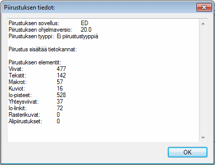 Näyttää aktiivisen piirustuksen järjestelmän sisäisiä tieoja.