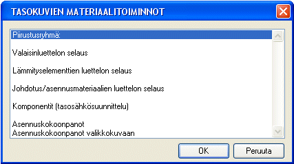 Tasopiirustusten materiaalit-valikko