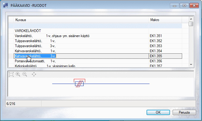 - Kaikki muokkaus pääkaaviolle tehdään peruskuvassa. Myös lähtönumeroiden päivitys käyttää numeroinnin hakuun pääkaavion peruskuvaa. Pääkaavion muokkaukseen voidaan käyttää pääkaavion teko -työkalun toimintoja tai perusgrafiikan työkaluja.