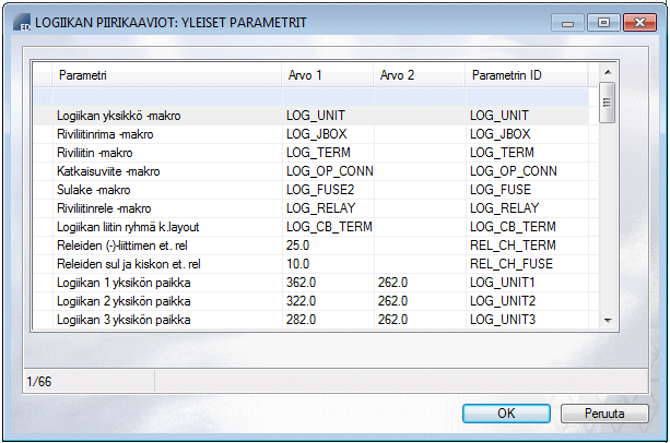 Logiikkasovelluksen asetusarvot. (PLC-kaaviot)