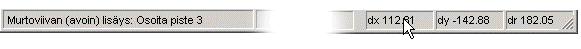 Esimerkkinä on 2D-piirustuksen tilarivi, jossa esitetään X- ja Y-koordinaatit sekä dr etäisyys viimeksi osoitetusta pisteestä.