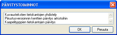 Toiminnoilla voit päivittää järjestelmässä olevia tietokantoja, piirustuksia yms.