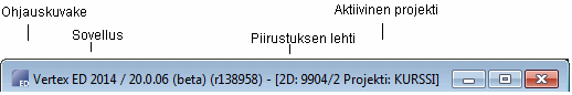 Otsikkorivillä esitetään ohjauskuvake, ohjelmistosovelluksen nimi ja versio, työikkunan tila sekä Windows-standardin mukaiset ikkunapainikkeet.