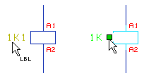 Voit lisätä symbolin kahvoihin laitetunnuksen, tekstitunnuksen ja kosketin- / liitintunnuksen.