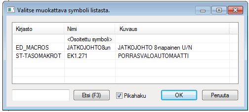 - Jos et tyhjennä ikkunaa, valittu symboli luetaan symbolieditorissa olevan jatkeeksi,