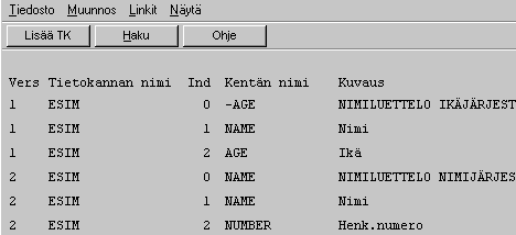 Muokkaamalla konfigurointitietokantaa voidaan muuttaa syntyvän Excel -taulun kenttien ja rivien järjestystä, listauksen ja kenttien otsikoita ja tulostusaluetta. Alla olevassa esimerkissä tietokannasta ESIM on kaksi eri siirtomuotoa.