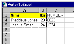 Vertex -> Excel -siirto