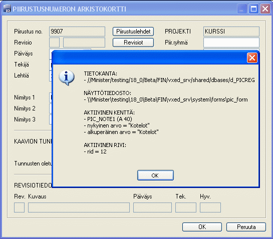 - PDF-tiedoston sisällysluettelossa piirustusnumeron jälkeen tulee valitun nimityskentän