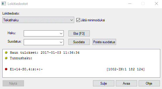 ikkunapainikkeella Palauta. - Voit hakea riviä lokitiedostosta käyttämällä Haku -kenttää.