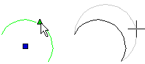 Stretching the center point of an arc changes the radius of the arc. The start and end points of the arc remain at their original locations.