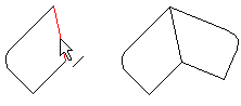 Mirror in relation to the symmetry axis of the selected line. The line will be copied in mirroring. Any geometric constraints defined for the lines will not be copied in mirroring. The symmetry line can be a line selected to be mirrored, or another polyline. The mirroring will add a symmetrical constraint to the original line and the mirrored line, when the 2D Constraint Manager is enabled. Other constraints will not be copied.