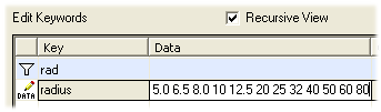 In this example, you will change the value of the radius keyword which belongs to the draft keyword group. The keyword defines the options for the list from which you can select the radius of a rounding between two lines. You can add a new option to the list as follows: