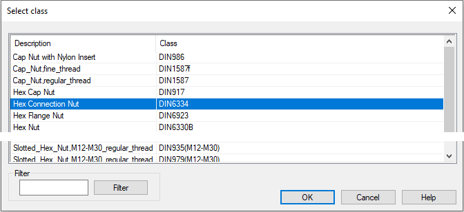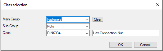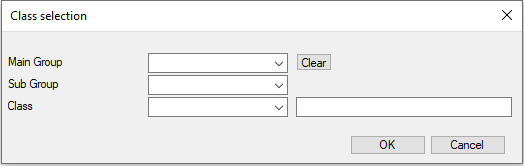 - The program opens the dialog box Class Selection, where the search criteria for items have been completed.