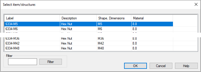 - With the help of the instruction described below, the material or item data is retrieved from the item database (d_COMPONENTS).