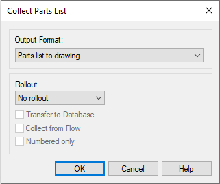 Parts List. - The program opens the dialog box Collect Parts List.