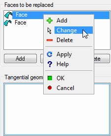 - The program lists the faces that will be used to make the face tangential to the edge faces.