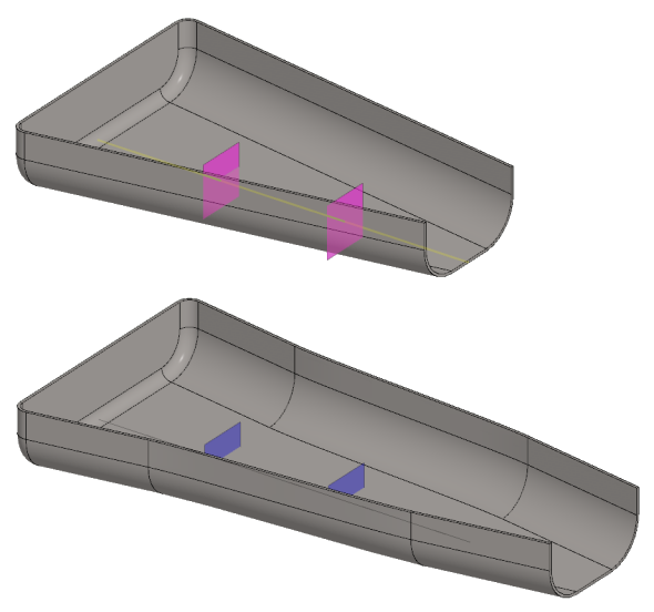 - Instead of a line, the part may have two faces or auxiliary planes that define the beginning and end of the stretch.