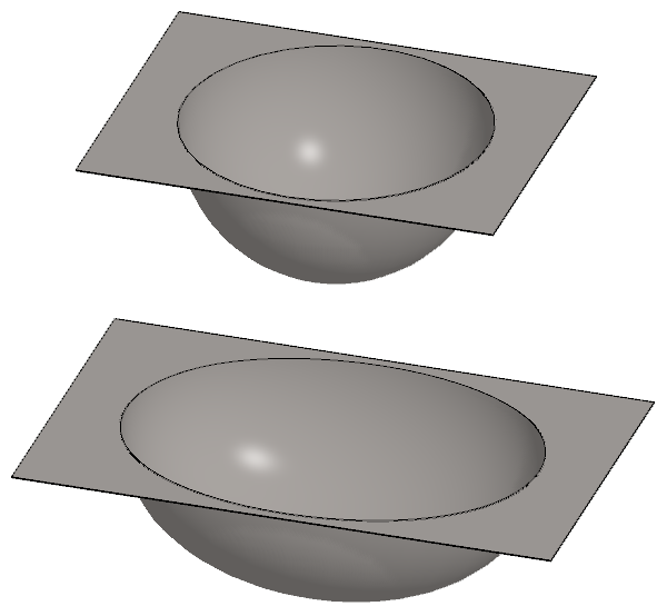 The hemispherical basin is stretched into a half-ellipsoid-shaped basin.