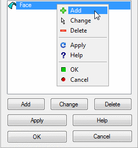 - Select a face from the list, press the right mouse button and select a function from the menu.