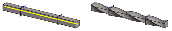 - Note that the shape of the cross-section is retained, regardless of whether the part is cut at any point after the twist in the direction of the normal plane of the rotation axis.