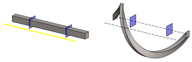 - The preview planes at the ends of the line (parallel to the plane normal) indicate the range of the model that will be twisted.