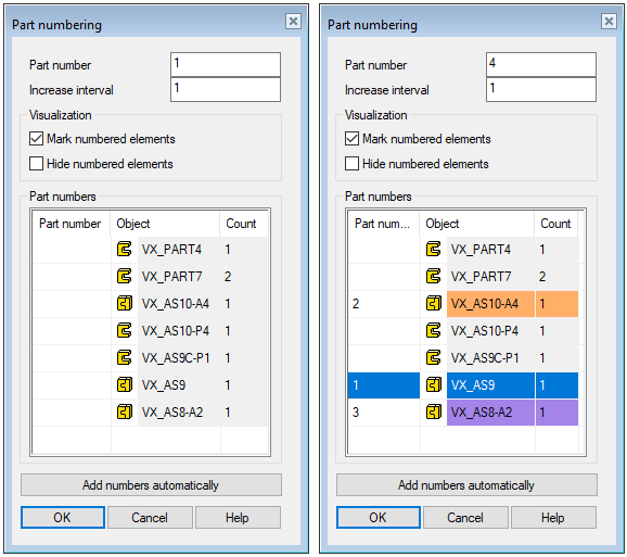 - You can let the program number the parts automatically.