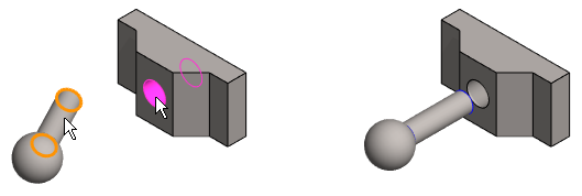 Add concentricity constraint. - Select a face, line, or a point from the first part.