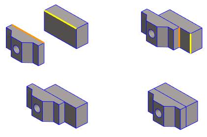 Add coincidence constraint. - Select a face, line, or a point from the first part.