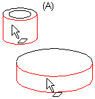 Below is an example of determining the Tangential constraint between the cylinder faces of two parts (A). The projections below illustrate the possible results: