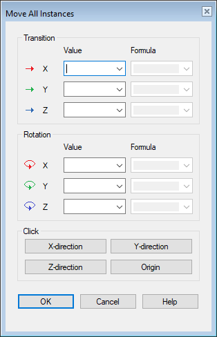 - The transition in the direction of the coordinate axes. From the drop-down list you can select previously entered transition values. The transition value can be either positive or negative and you can see the positive directions of the coordinate axes in the model window. Coordinate System