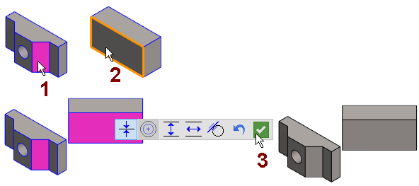 - Select a face, line, or a point the second part.