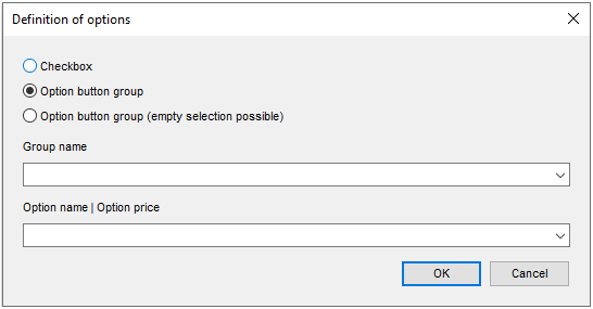 - Option button group (empty selection possible) = You can only select one option from the group at a time, but selecting an option is not mandatory (= empty selection).