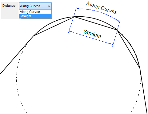 - If you entered a Delta value, you can choose whether the distance is calculated Along Curves or Straight.