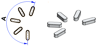 - The radius defines the value of the radius in the geometry, type of guide curve, PATTERNPOLAR.