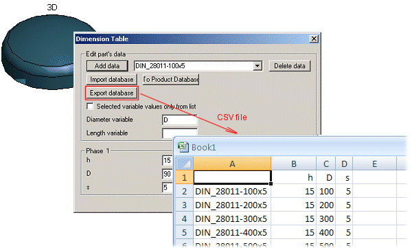 - You can output the dimension table data of 2D and 3D components in an ASCII file with the Export/Export database function in the Dimension Table window. You can save the data in either a CSV or a TXT file. You can create a dimension table when creating a new component.