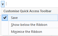 Customize Quick Access Toolbar. - For example, select the functions Save and Redo permanently visible. Remove the selection by selecting the same function again.