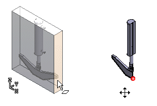 You can limit a model's visibility with a planar face in the direction of the coordinate axis X, Y or Z, when the model display method selected is shading. After selecting the function, a rectangular polyhedron is drawn around the model, from which you can click the limiting face. When you move the limiting face in the model, the model is cut.