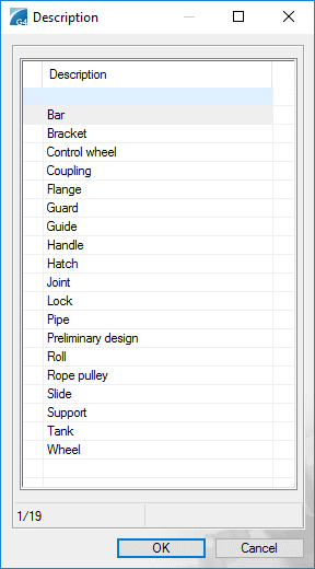 The Description dialog box is opened. Edit the data in the dialog box. Select the Description text in the It's, and select Add row before, Delete row or Copy row. Click OK.