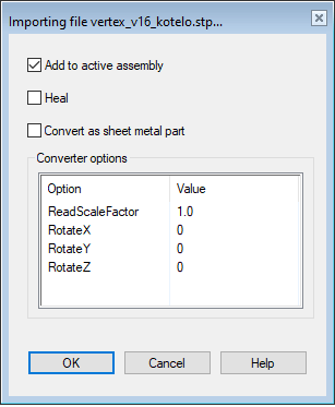 - Open or activate the assembely model window where you want to import the SAT or STEP file.
