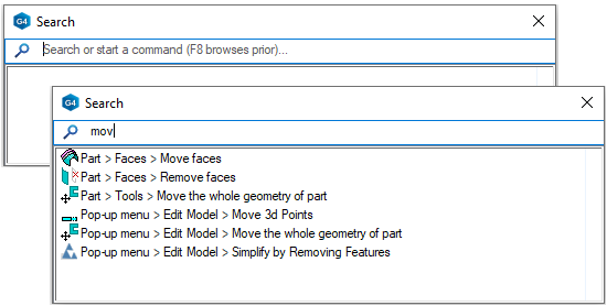 - This method was originally intended to be used for commands that were intentionally left out of the user interface, but the function has been extended since version 2023 (23.0.00) so that the program presents the functions that match the entered string.
