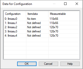- Click OK in the Data for Configuration dialog box, when you are finished adding all the necessary configurations.
