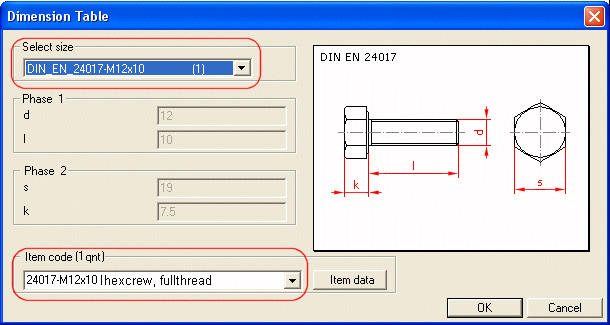 After selecting the dimension table ID, select the item data to be linked to the part. Continue as follows: