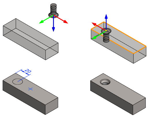 If you add a feature to an empty model, place it at the origin of the part model by entering the coordinates 0,0,0 in the